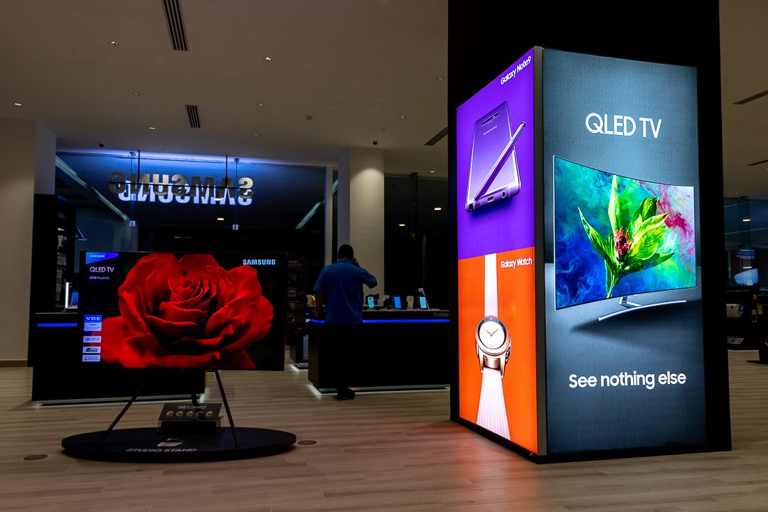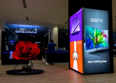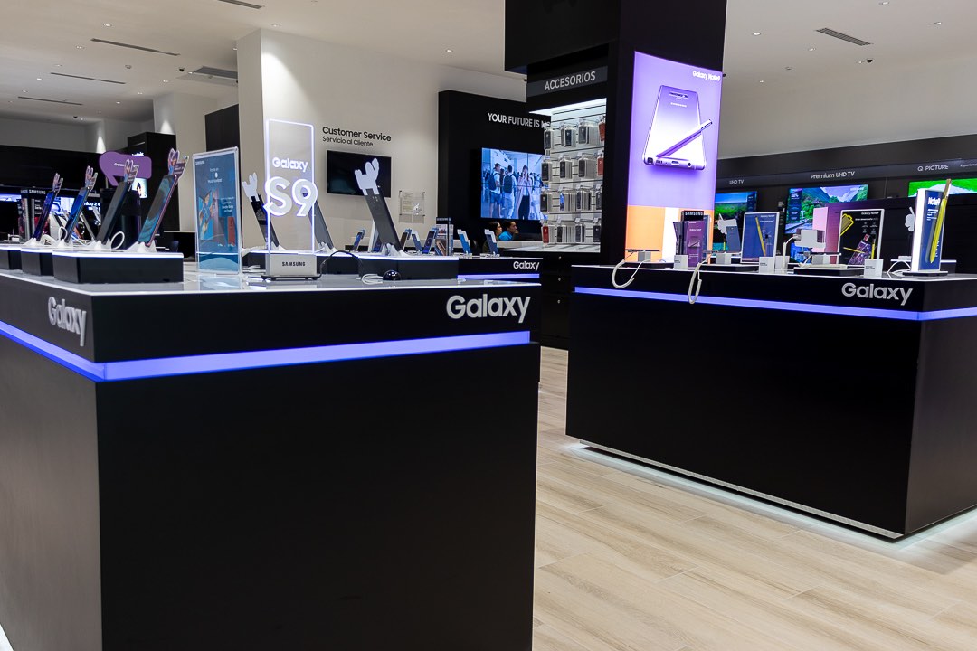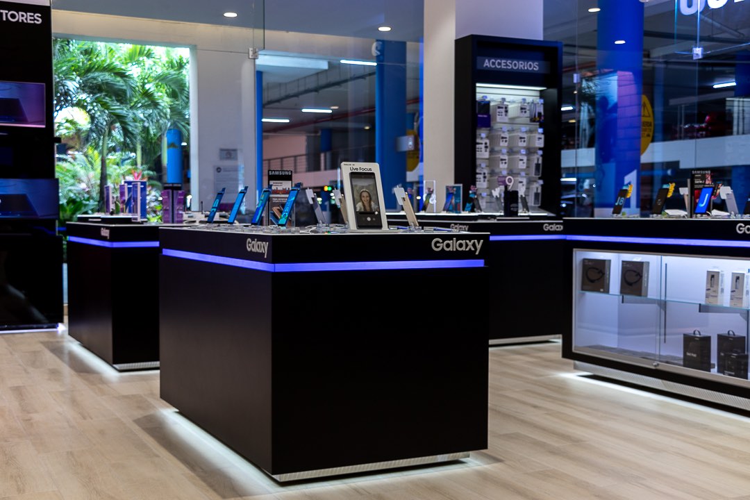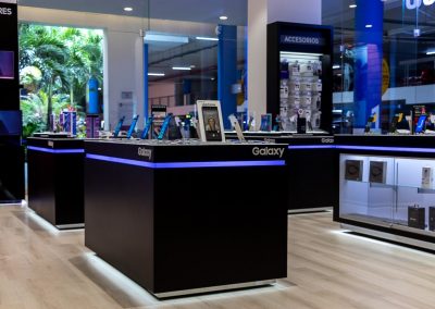 Para la remodelación de ésta tienda diseñamos fabricamos e instalamos todos los muebles de exhibición, cajas de luz con tela tensada, mesas de experiencia, paredes de exhibición de productos, puntos de pago y muebles de servicio al cliente, islas de exhibición de lavadoras, stands para exhibición de televisores y monitores; los materiales utilizados en la fabricación de este mobiliario se utilizaron materiales como: MDF, acrílico, aluminio, piezas metálicas y pinturas amigables con el medio ambiente, para que el cliente tenga la mas increíble experiencia con Samsung.